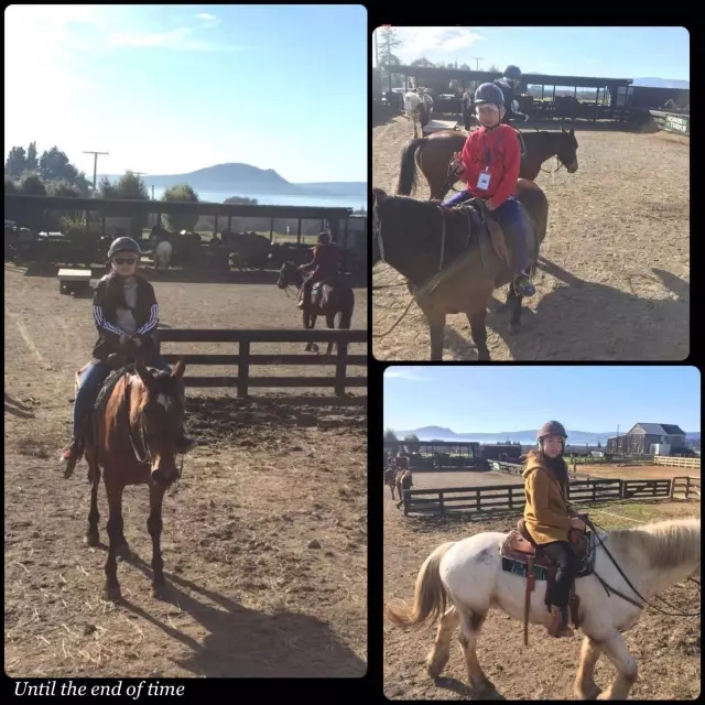 今天我们来到了位于451 Nogongotaha Road, Rotorua的马场学习马术。到了马场,教练简单教授了大家骑马技能,大家便开始独自上马骑行。一路上,骑行路线很美,骑了一段平地后,教练便领着大家上山,到了山顶,Rotorua Lake 的全景尽收眼底。教练全程用英语跟大家交流,孩子们也尽力用英语跟教练对话,约1个小时的学习后,除了学会了骑马,孩子们还学会了关于骑马的简单英语表达。