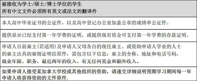 而对于获得学士学位、硕士学位、博士学位课程录取的学生来说,也只是需要提供其高中毕业证书中英文的公证件,资金证明上也只需提供其支付了第一年加拿大院校的学费的证明或者有支付这一年学费的存款即可。