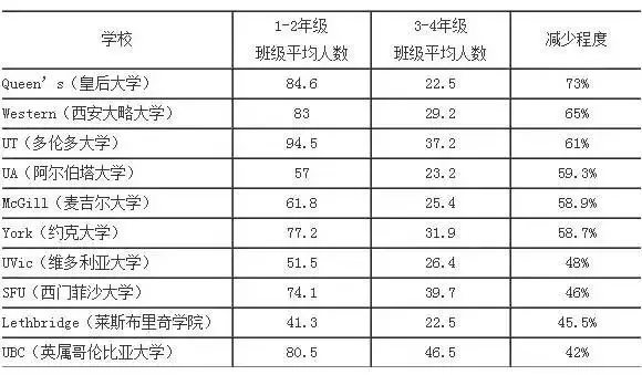这是加拿大部分名校的学生减少情况,各大学的人数在从1、2年级进入3、4年级之后,有40-60%以上的大幅削减。