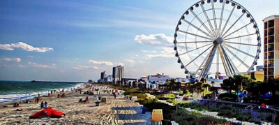 默特尔海滩边上由木板铺成的小道延伸至远处,而建于小路之上的“默特尔海滩”摩天轮于2011年完工,乘着摩天轮您可尽情观赏海滩边宏伟壮丽的景色。就像所有其他的巨型摩天轮一样,这座摩天轮特征封闭,拥有独特的气候控制舱,但是它以更快的速度高度旋转着,即使这样,它仍然是相当缓慢,不会使乘客感到晕眩和任何不适。乘坐一次会转三个大圈,大概用时9分钟。