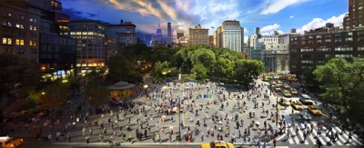 联合广场因位于广场上的美国第一任总统乔治•华盛顿骑高头大马的雕塑而知名,这是纽约市的第一尊公共雕塑,也是美国第一尊骑马的青铜雕塑。除了因雕塑而知名外,这个面积广阔的市场也因农贸市场而知名,在每周周一、周三、周六和周日对外开放,从上午的8:00至下去的18:00是市场开放的时间,来自四面八方的小贩来此兜售自家农场种植的新鲜有机瓜果蔬菜,每天约有60000多人来此参观和购物,使其成为世界最知名的市场之一。