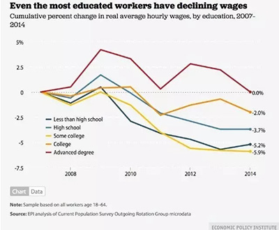 “在国家对高科技人才求贤若渴的大环境下,很多学生耗时耗财甚至背负学生贷款来选择就读STEM专业,造成这一领域就业市场逐渐饱和,他们根本无法获得更高的薪水来偿还学贷”。