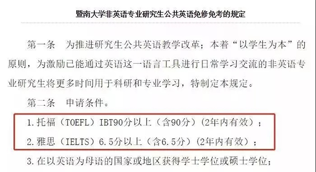 近年来,国内大学对雅思成绩的认可度不断提高,武汉大学、暨南大学、浙江大学等知名院校都将雅思成绩作为免修英语课程的申请条件之一。