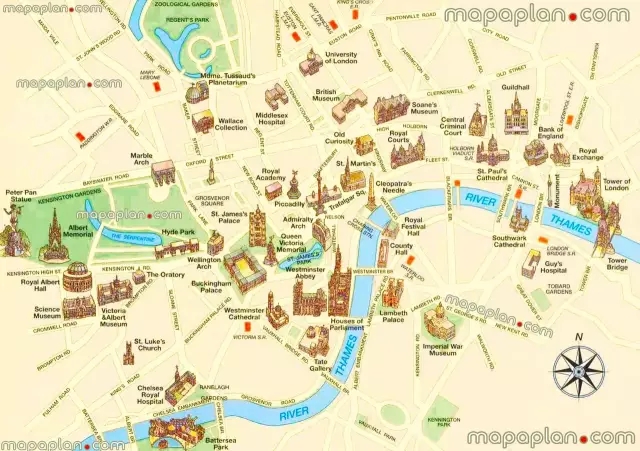 其实伦敦是一个景点很密集的大城市,很大部分,最最最有名的景点,都在下图了。