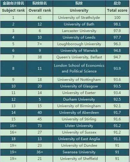 下面是2018年TIMES英国金融&会计专业最好的大学榜单